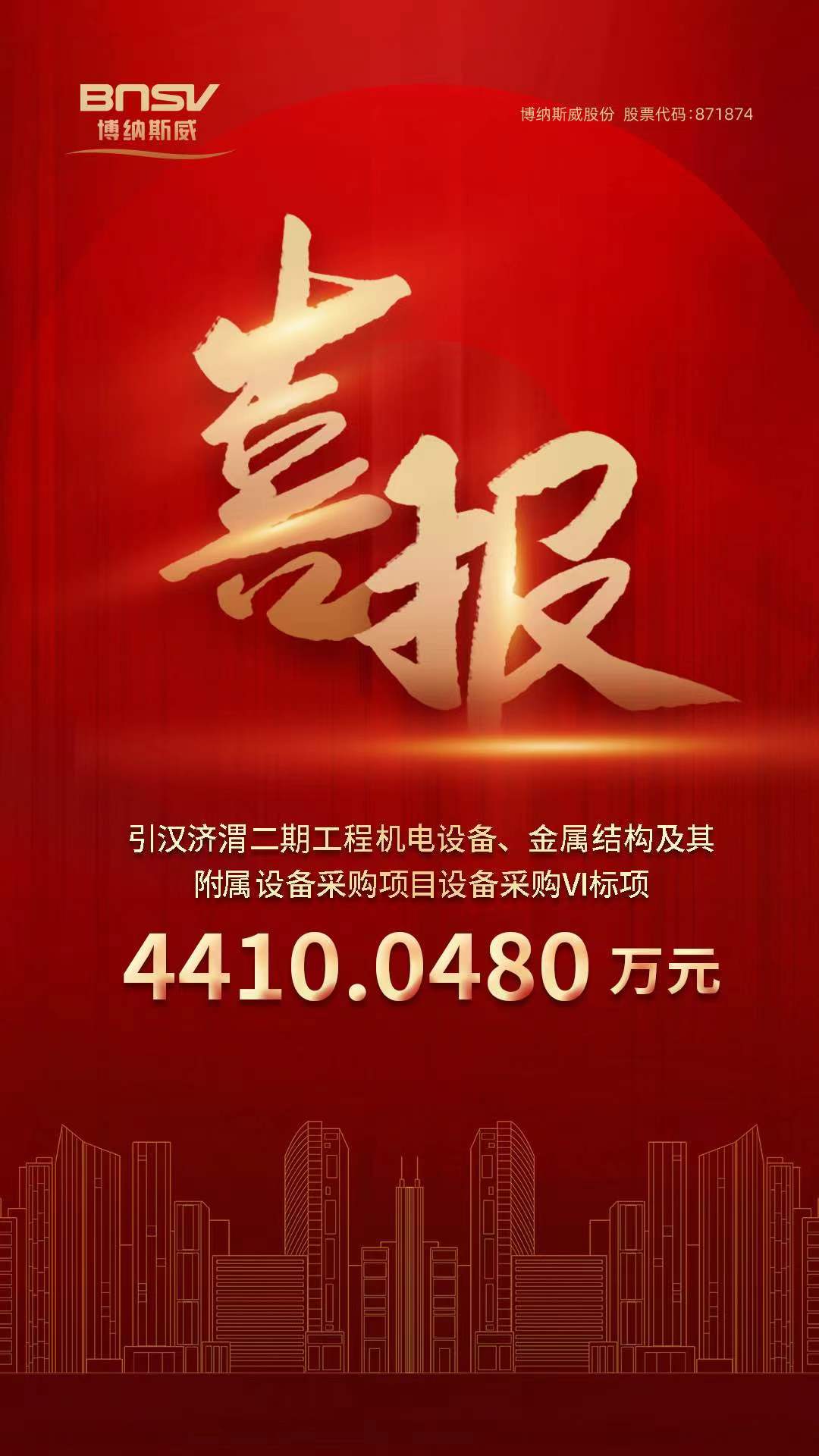 喜報(bào)!博納斯威中標(biāo)引漢濟(jì)渭二期工程4410.0480萬元