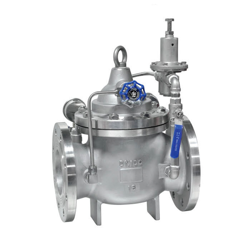 本產(chǎn)品適用工礦企業(yè)、高層建筑、生活用水、消防用水系統(tǒng)中使用,需要減靜壓和動(dòng)壓的場(chǎng)合可以取代中間水箱,節(jié)約建筑中間水箱的費(fèi)用,擴(kuò)大建筑物使用的空間。閥體采用流線型設(shè)計(jì),流體阻力小,流量大。在傳動(dòng)方式上采用了水力操作,即利用管路中的水壓自動(dòng)操作主閥盤的上下移動(dòng),控制閥口開度,調(diào)節(jié)下游壓力,使下游壓力維持在導(dǎo)閥彈簧設(shè)定的壓力值上。當(dāng)下游壓力超過設(shè)定值時(shí),減壓閥將自動(dòng)關(guān)閉,不管入口壓力P1怎樣波動(dòng),都可輸出穩(wěn)定的出口壓力P2。不管下游流量怎樣變化,都能維持出口壓力P2穩(wěn)定在導(dǎo)閥設(shè)定值上。出口壓力調(diào)節(jié)范圍大,且工作平衡,無水錘沖擊現(xiàn)象。