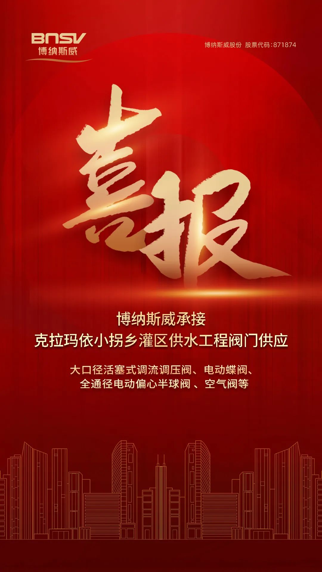 喜報(bào)!博納斯威承接克拉瑪依小拐鄉(xiāng)灌區(qū)供水工程閥門(mén)供應(yīng)